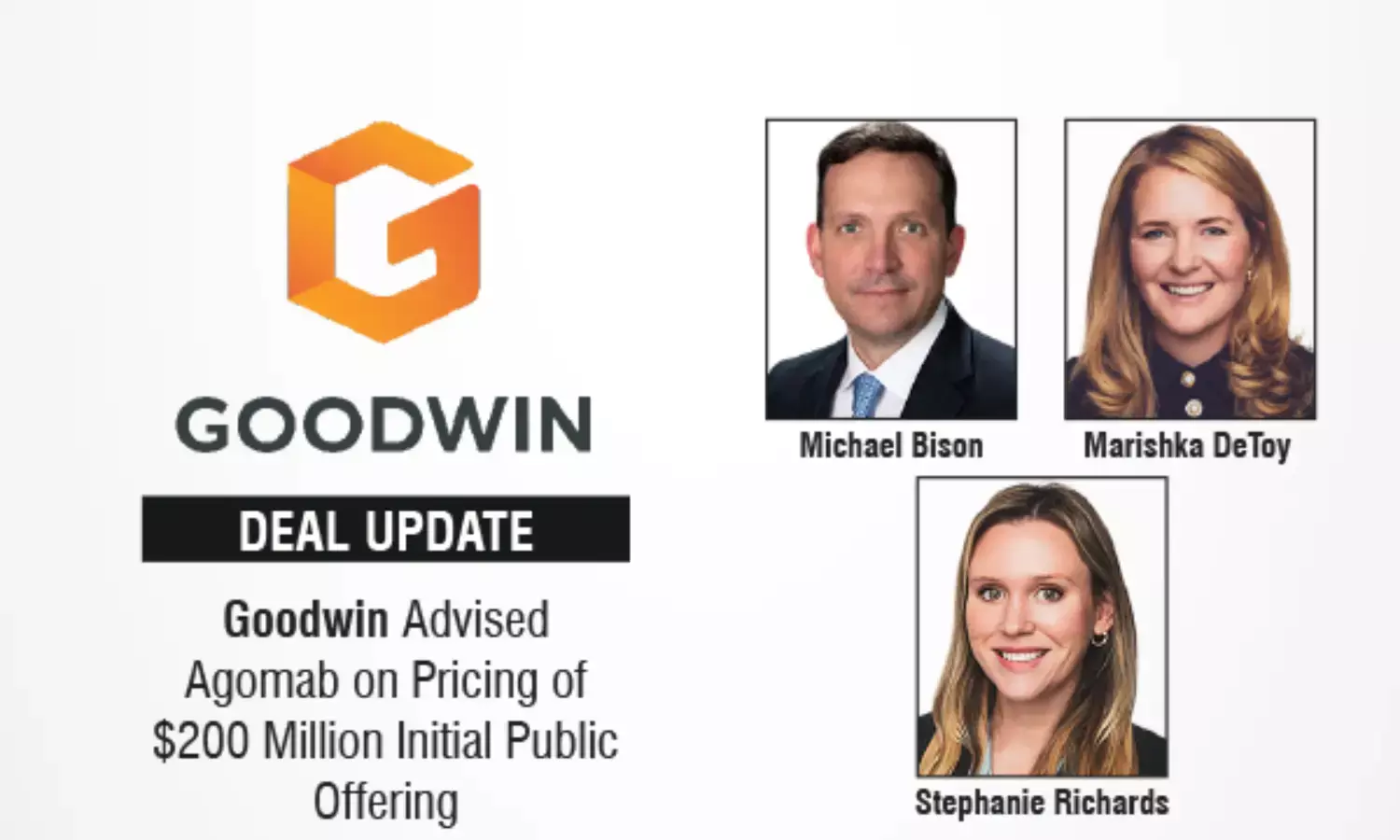 Goodwin Advised Agomab on Pricing of $200 Million Initial Public Offering