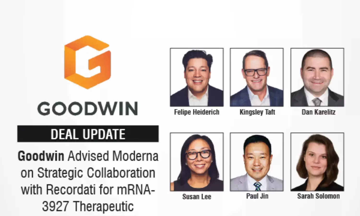 Goodwin advised Moderna, Inc. (“Moderna”) on a strategic collaboration with Recordati to advance Moderna’s investigational