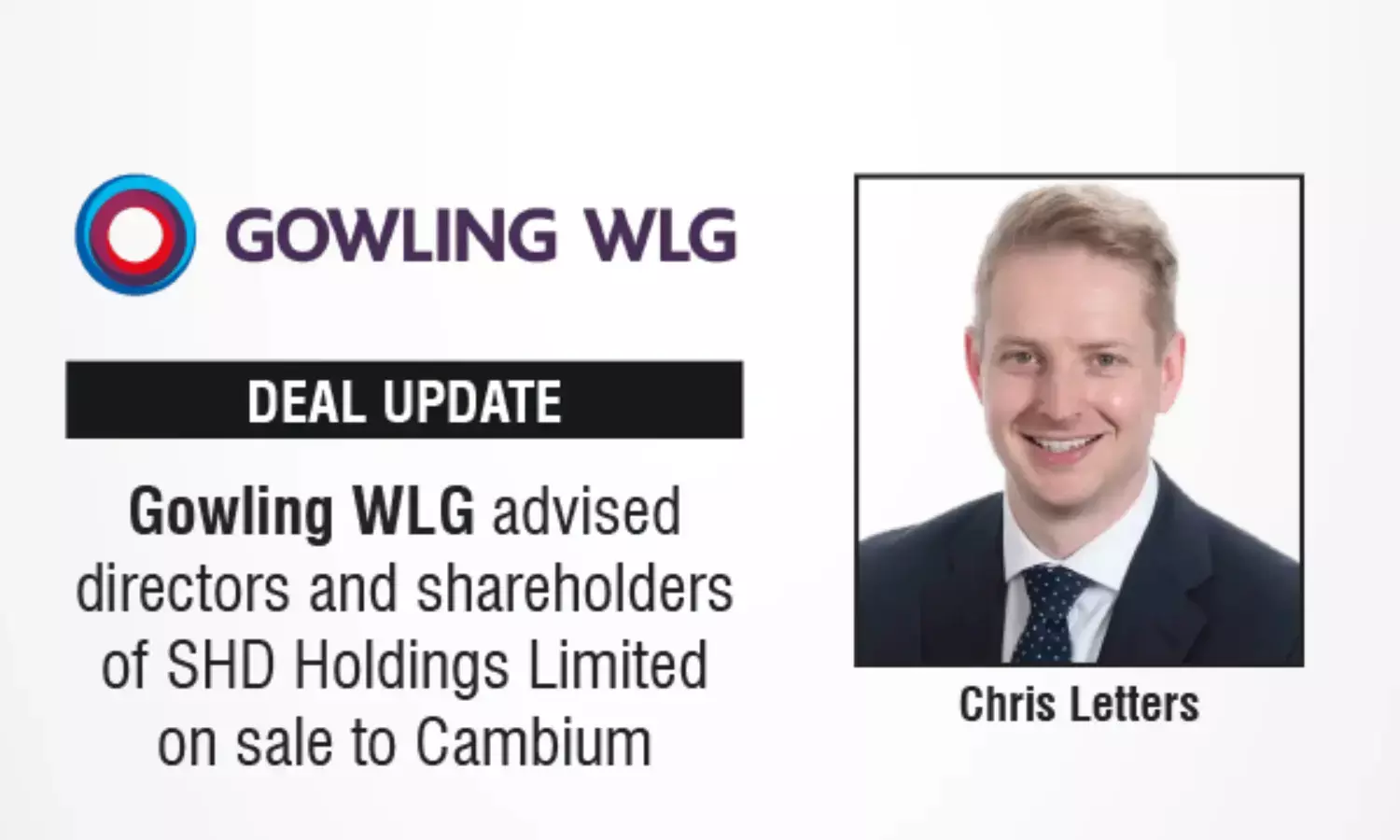 The Gowling WLG has advised the directors and shareholders of SHD Holdings Limited (SHD) on its sale to Cambium.
