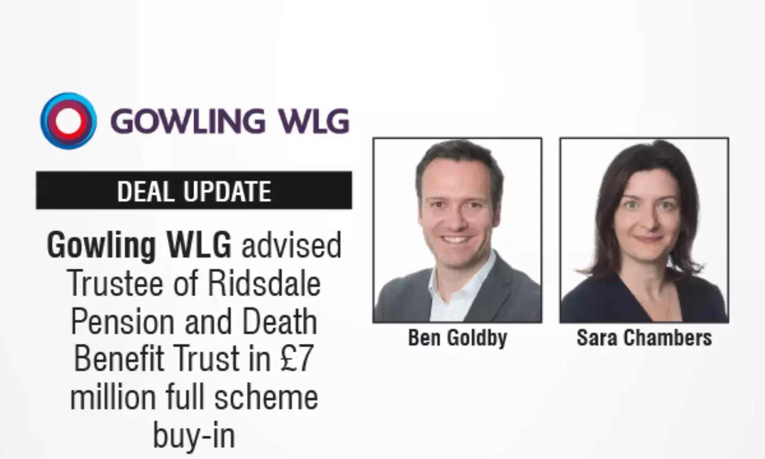 Gowling WLG team has advised the Trustee of Ridsdale Pension and Death Benefit Trust (Ridsdale) in a £7 million