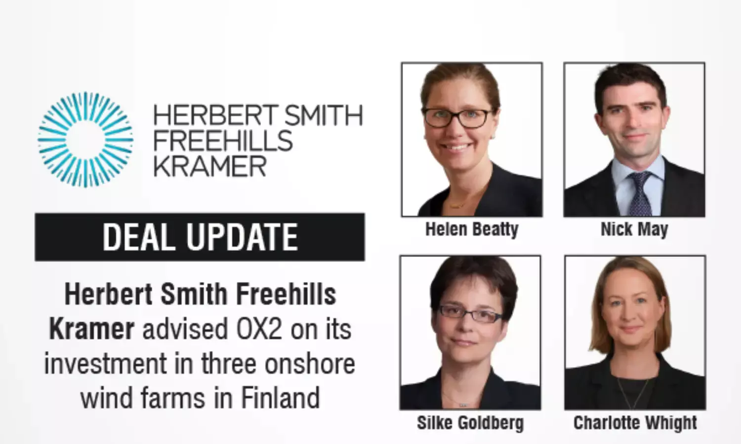 The Global leading law firm Herbert Smith Freehills Kramer has advised OX2 on its investment in three onshore wind farm