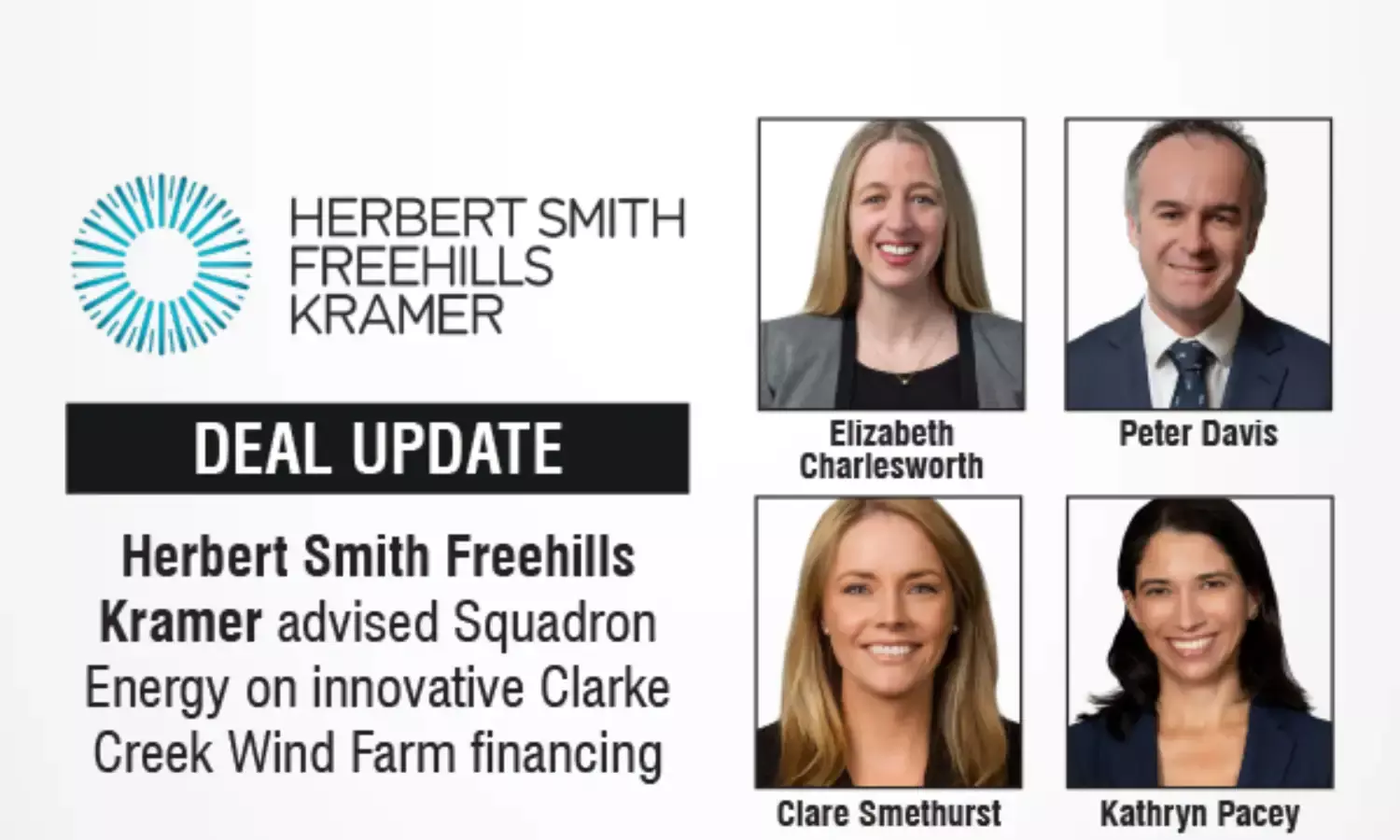 Herbert Smith Freehills Kramer Advised Squadron Energy On Innovative Clarke Creek Wind Farm Financing