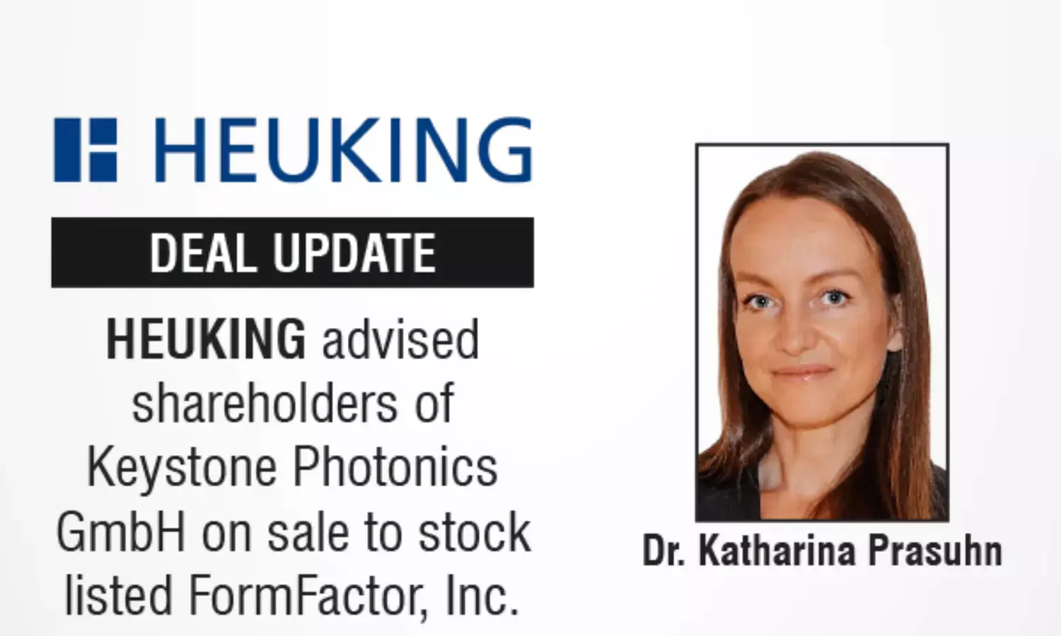HEUKING advised shareholders of Keystone Photonics GmbH on sale to stock listed FormFactor, Inc.
