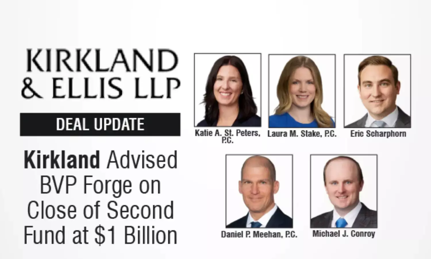 Kirkland Advised BVP Forge on Close of Second Fund at $1 Billion