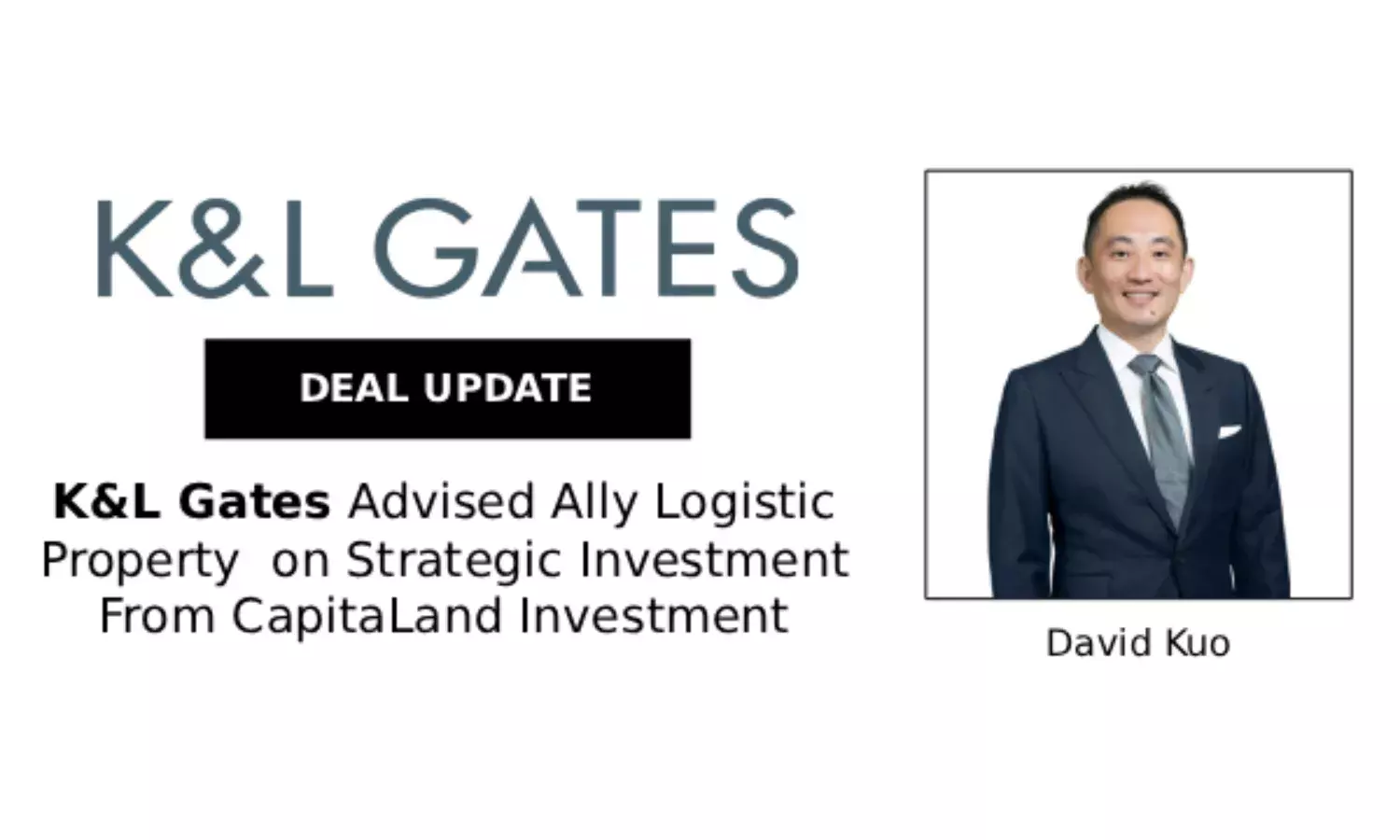 Global law firm K&L Gates has advised Ally Logistic Property (ALP), a global pioneer in smart logistics infrastructure based in Asia, in relation to a strategic investment from CapitaLand Investments (CLI), a leading global real asset manager with a strong foothold in Asia.