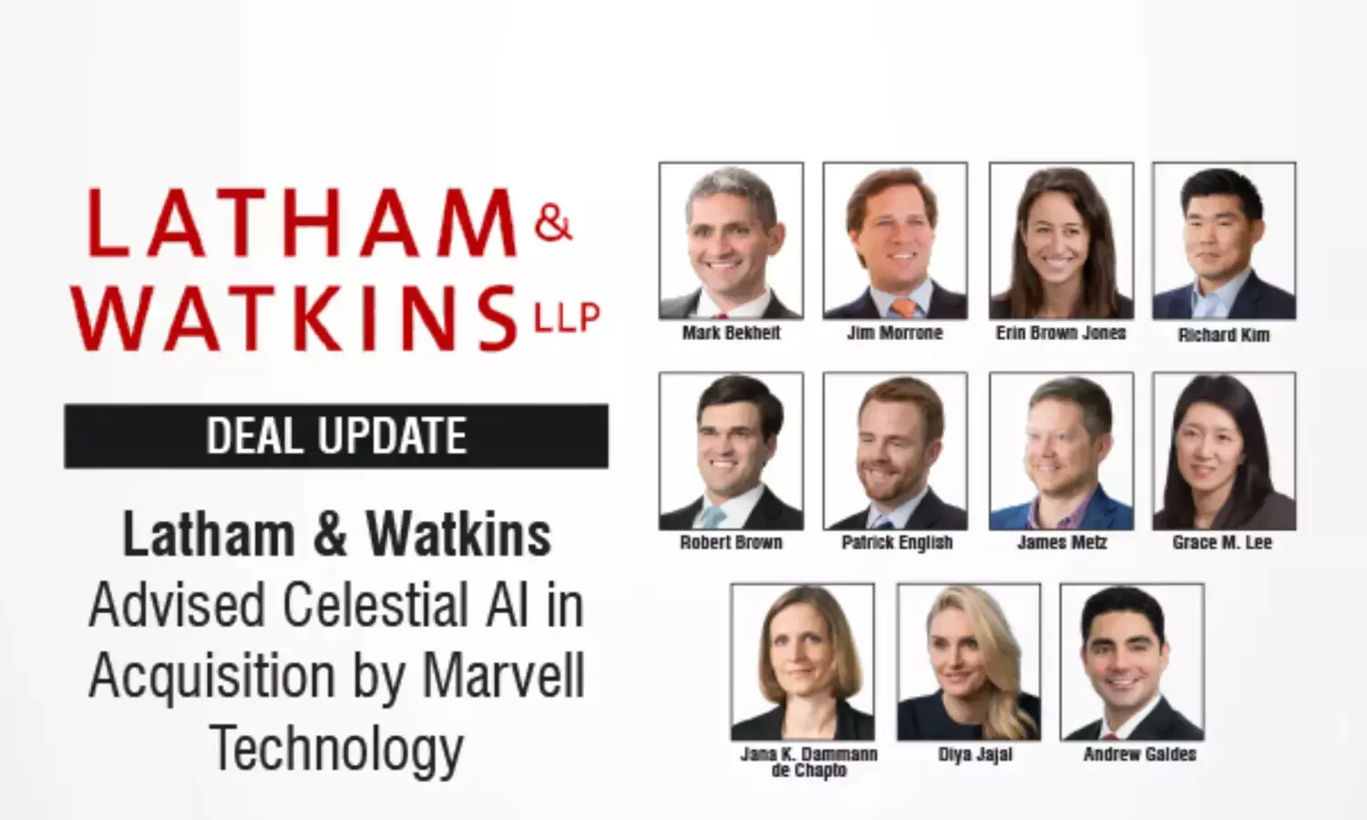 “Latham & Watkins LLP represented Celestial AI in connection with its acquisition by Marvell Technology, Inc. (NASDAQ: