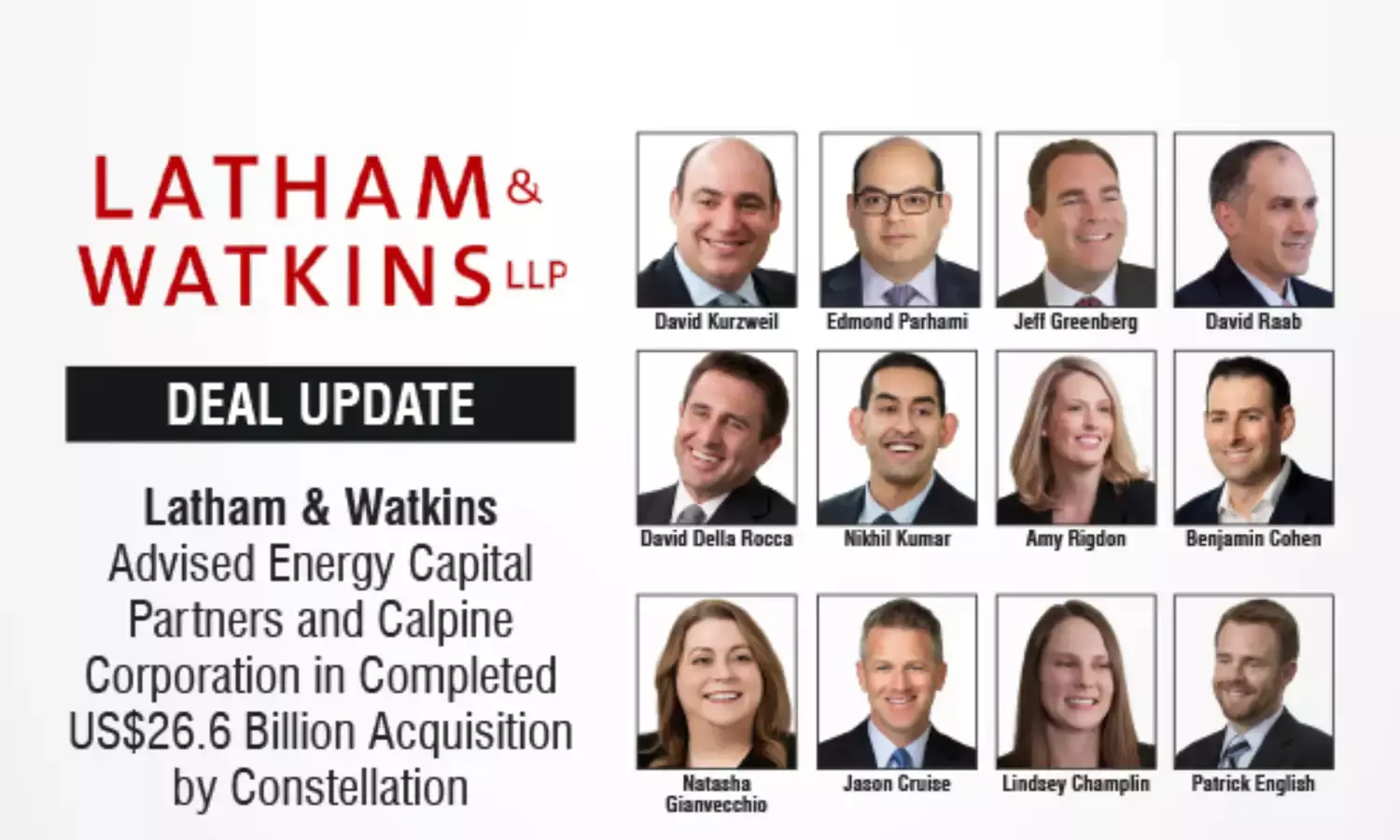 Latham & Watkins Advised Energy Capital Partners and Calpine Corporation in Completed US$26.6 Billion Acquisition by Constellation