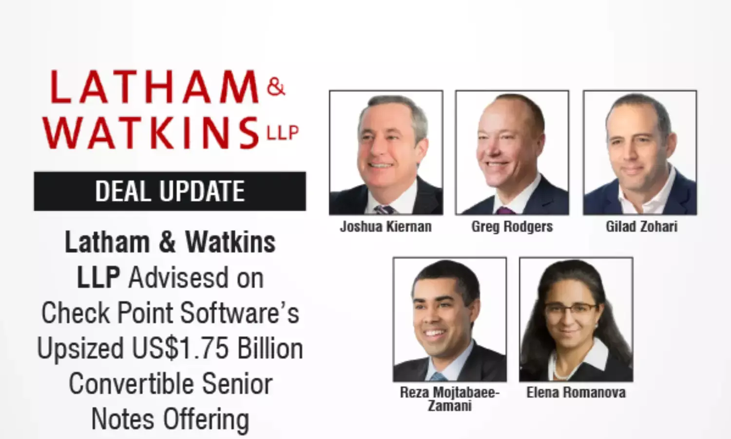 Latham & Watkins LLP Advised On Check Point Software’s Upsized US$1.75 Billion Convertible Senior Notes Offering