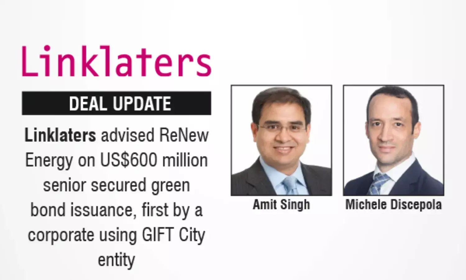Linklaters advises ReNew Energy on US$600M senior secured green bond, first corporate issuance via GIFT City entity.