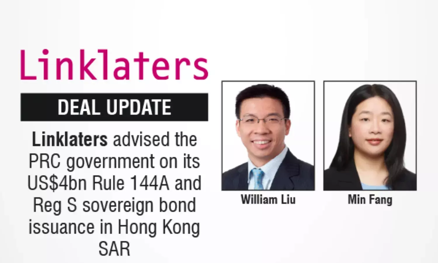 Linklaters Advised The PRC Government On Its US$4bn Rule 144A And Reg S Sovereign Bond Issuance In Hong Kong SAR