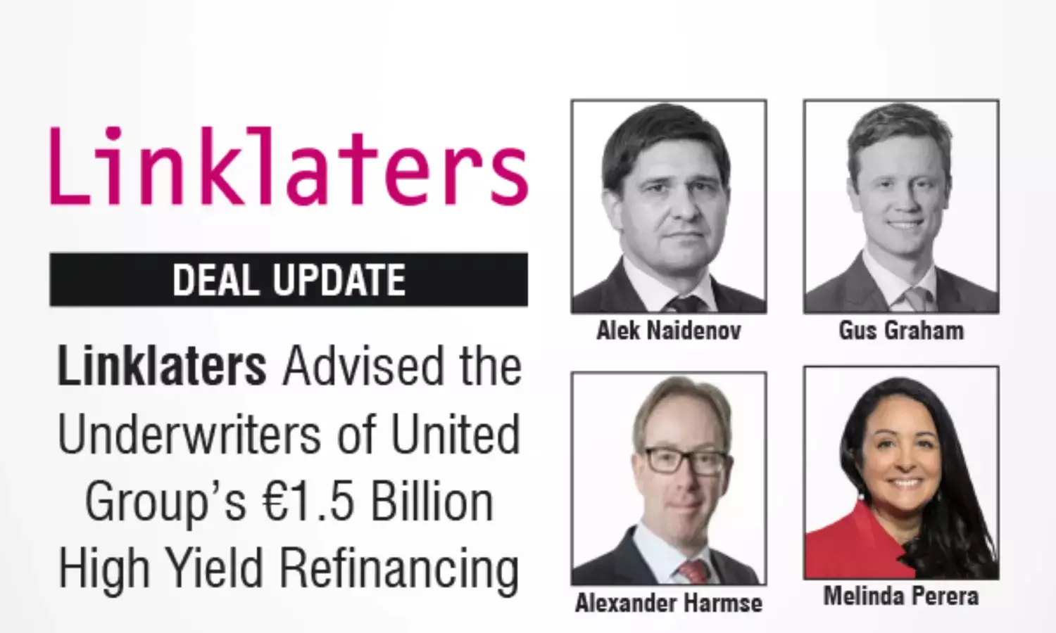 Linklaters advised the underwriters of United Group’s €1.5 billion high yield refinancing, comprising €1,130 million Senior
