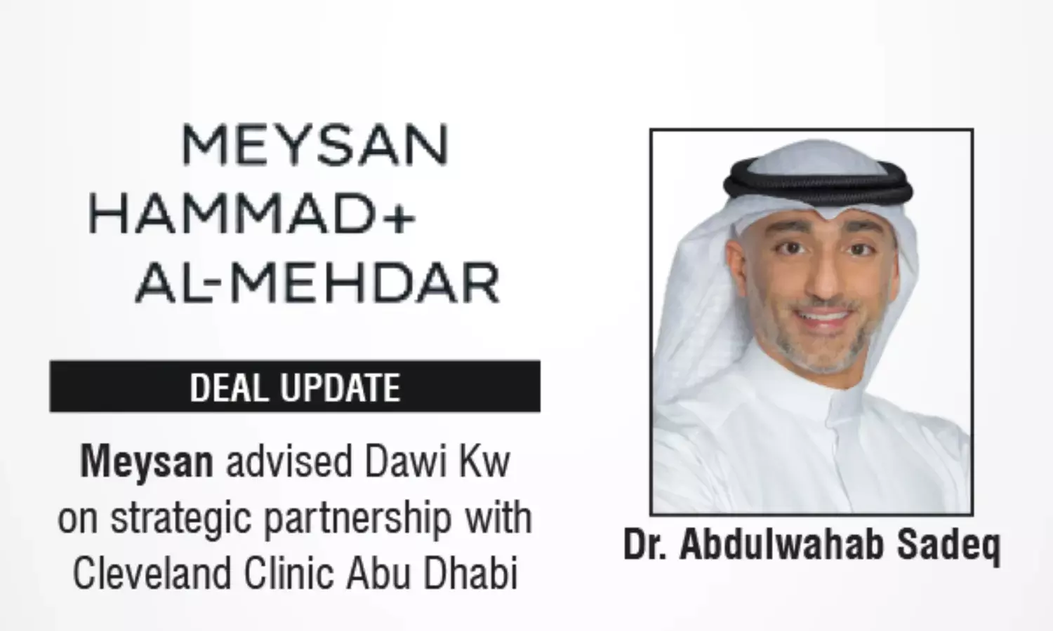 The international law firm, Meysan, is pleased to announce its role as legal advisor to Dawi Kw, a Kuwait-based digital health platform enabling patients to access premium healthcare services across the region, in connection with its strategic partnership with Cleveland Clinic Abu Dhabi, a Mubadala Health partner.