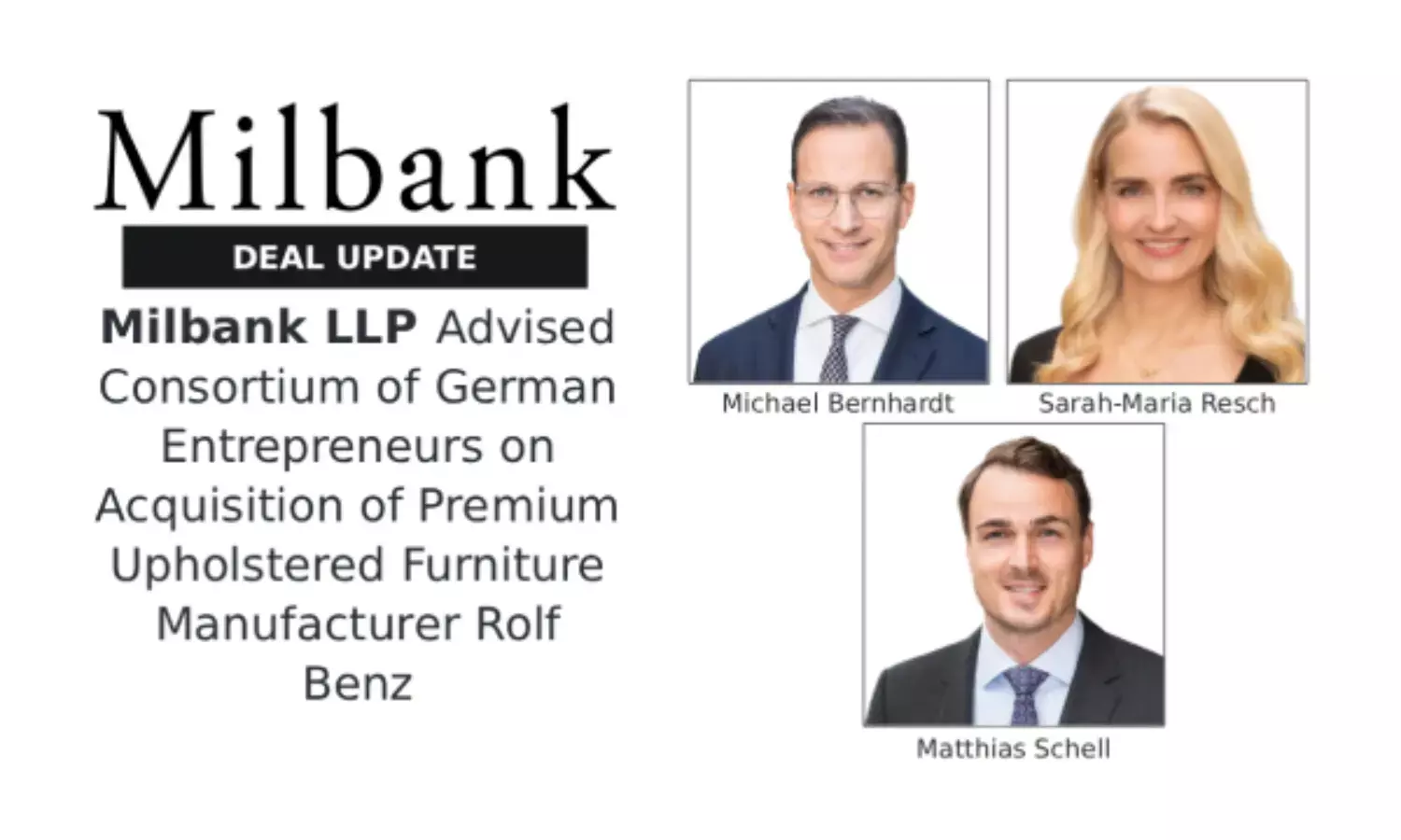 Milbank LLP Advised Consortium of German Entrepreneurs on Acquisition of Premium Upholstered Furniture Manufacturer Rolf Benz