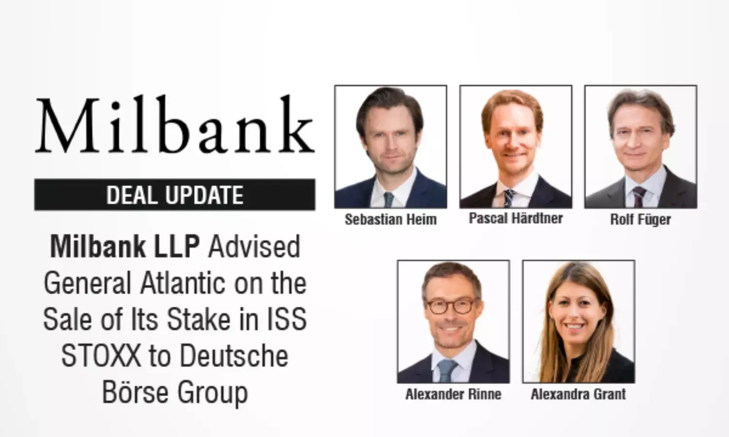 Milbank LLP has advised General Atlantic, a leading global investor, on the sale of its stake in ISS STOXX, a leading data, analytics and index provider, to Deutsche Börse Group.