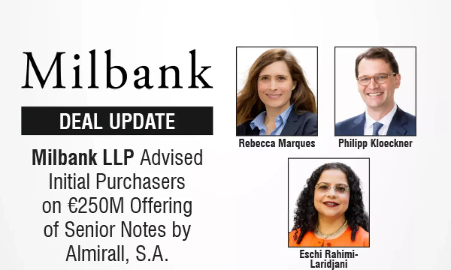 Milbank LLP Advised Initial Purchasers on €250M Offering of Senior Notes by Almirall, S.A.
