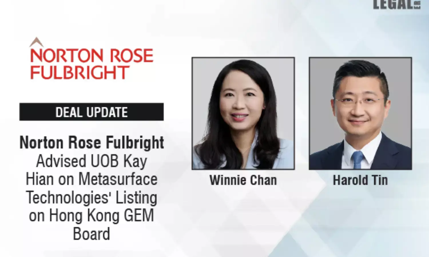 Global law firm Norton Rose Fulbright has provided legal counsel to UOB Kay Hian on its exclusive sponsorship of Metasurface Technologies' listing on the GEM Board of the Hong Kong Stock Exchange (HKEX).