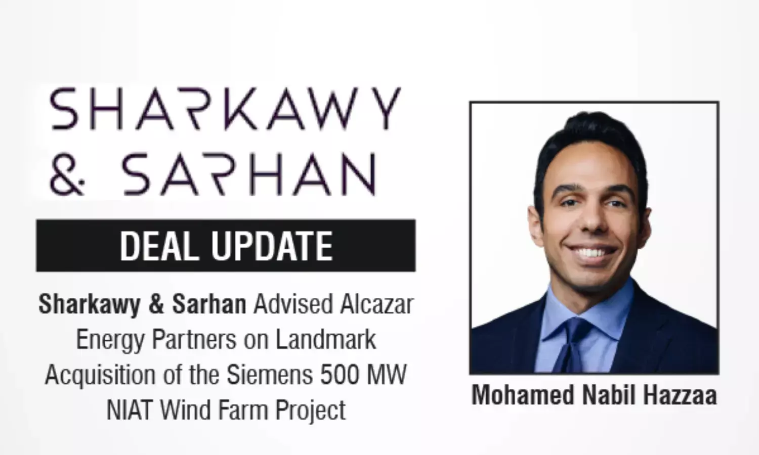 Sharkawy & Sarhan Advised Alcazar Energy Partners on Landmark Acquisition of the Siemens 500 MW NIAT Wind Farm Project