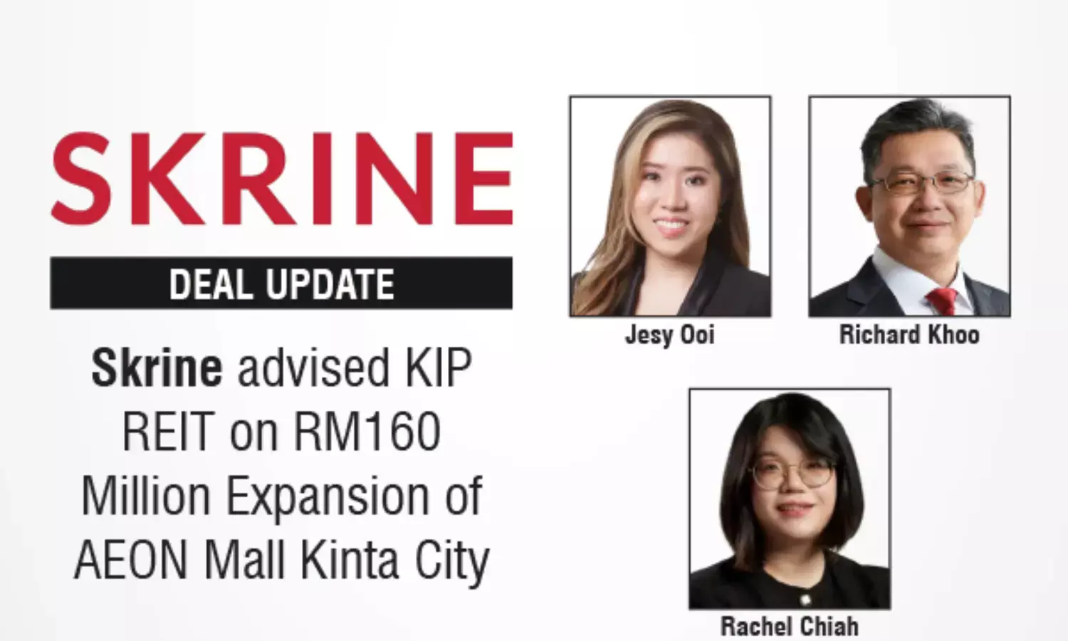 The Skrine team consisted of Jesy Ooi (Partner), Richard Khoo (Partner), Rachel Chiah (Partner), and Cynthia Lam (Associate).