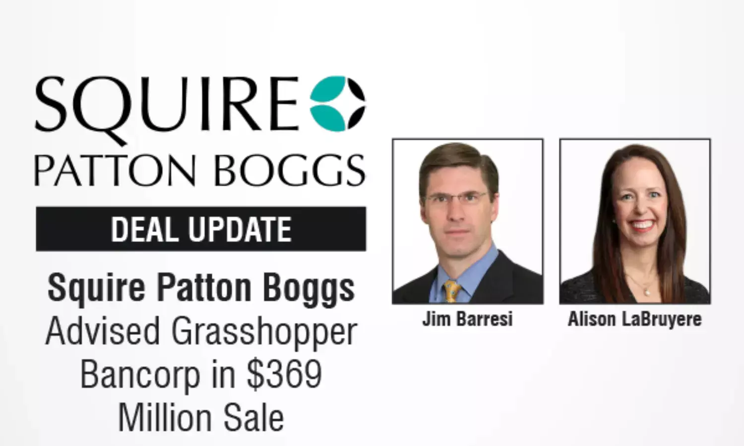 Squire Patton Boggs Advised Grasshopper Bancorp in $369 Million Sale