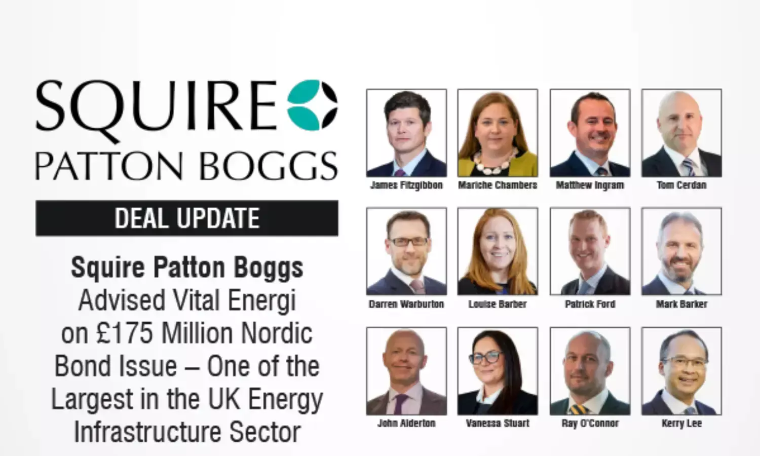 Squire Patton Boggs has advised Vital Energi, a leading provider of energy infrastructure solutions, on a £175 million fundraising through a Nordic Bond issue and the acquisition of the Port Clarence biomass facility in Teesside, marking a significant milestone in the company's strategic asset ownership growth plans. The bond is one of the largest Sterling-denominated Nordic Bond raises in the UK energy infrastructure sector.