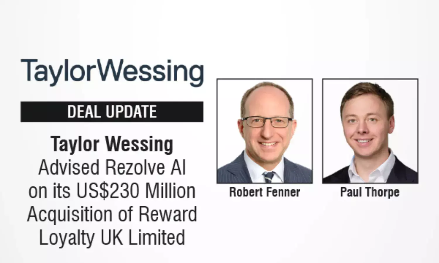 Corporate Partner Robert Fenner said: "We are delighted to have advised Rezolve AI Plc on this very exciting deal, which is one of a number of acquisitions made by Rezolve AI over the last twelve months as it has grown its groundbreaking product offering. Rezolve AI continues to go from strength to strength, and this latest addition will solidify their position as an industry leader in AI-powered solutions for consumer engagement."