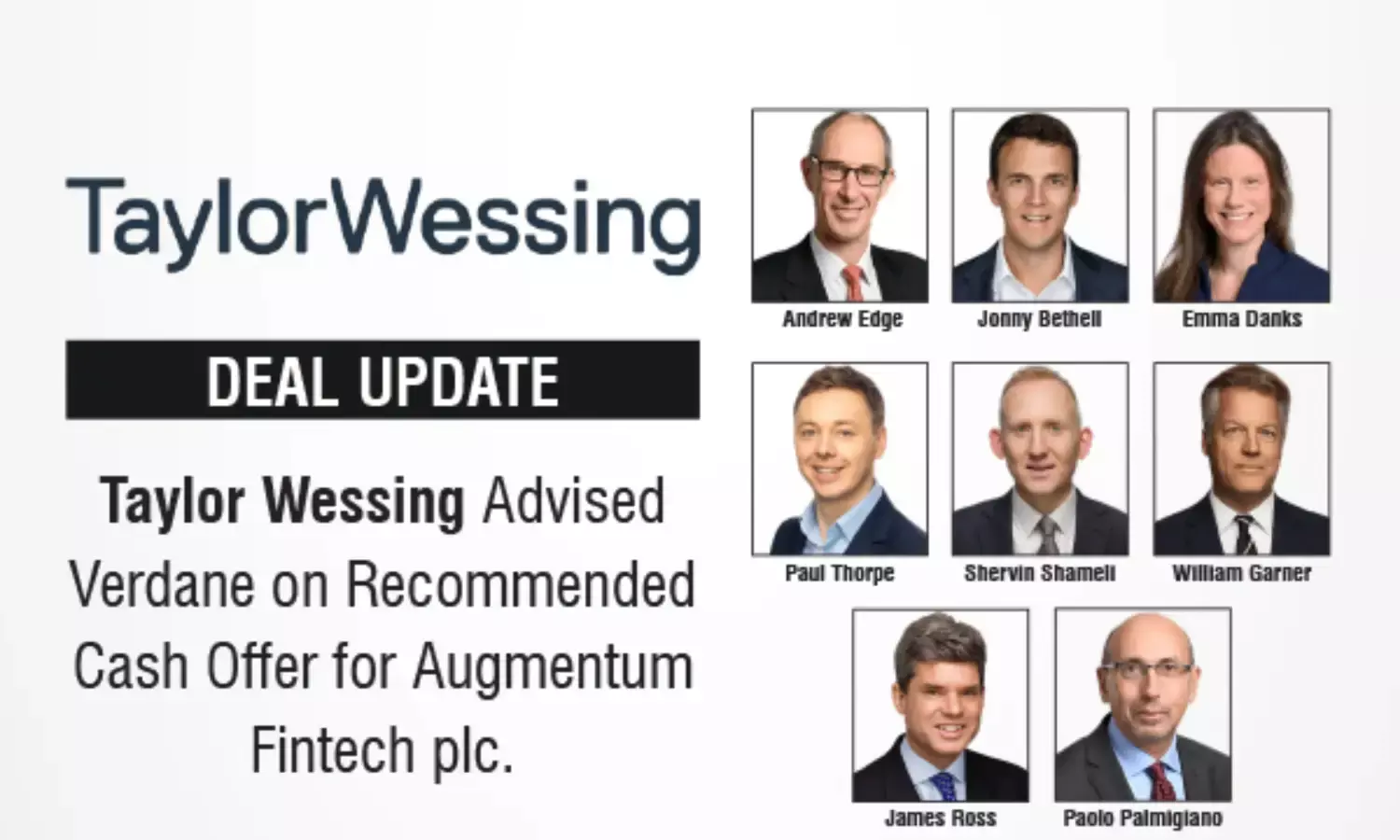 Taylor Wessing Advised Verdane on Recommended Cash Offer for Augmentum Fintech plc.
