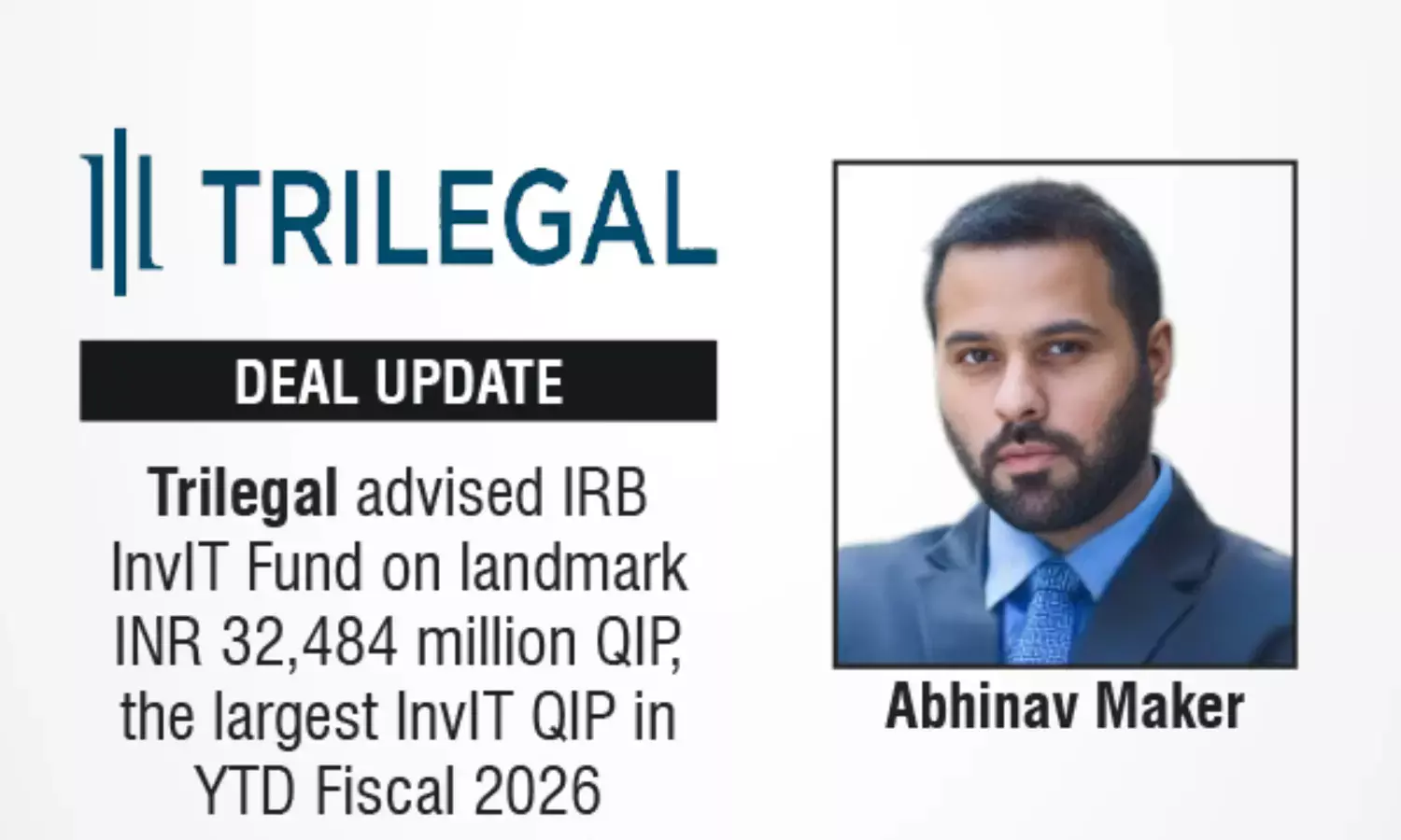 Trilegal advised IRB InvIT Fund on a landmark INR 32,484 million QIP, the largest InvIT QIP in YTD Fiscal 2026.