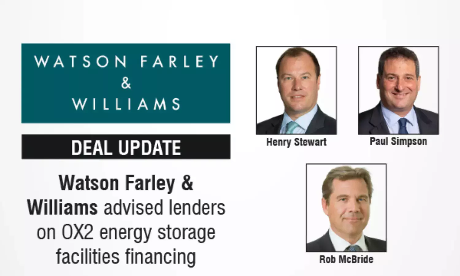 Watson Farley & Williams advised lenders on OX2 energy storage facilities financing