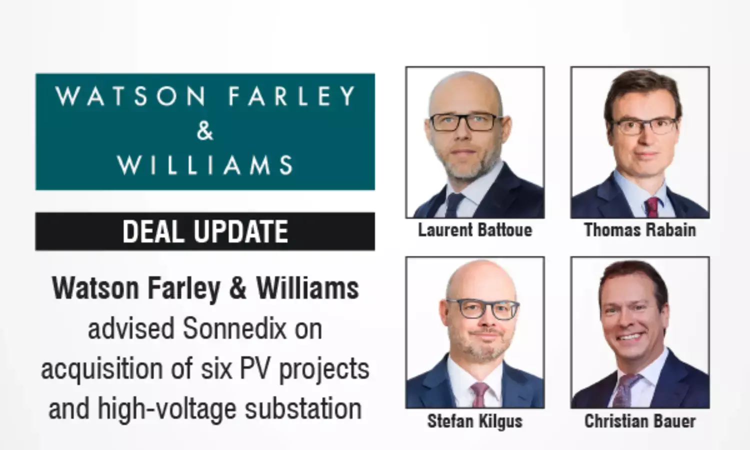 Watson Farley & Williams (“WFW”) advised global renewable energy company Sonnedix on its acquisition of five projects.