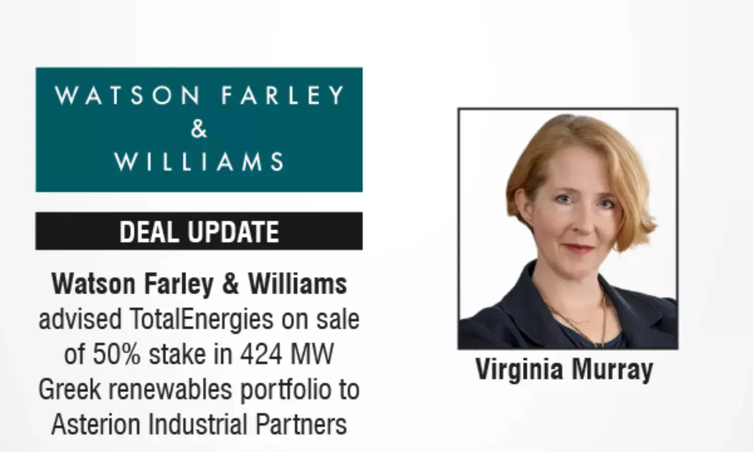 Watson Farley & Williams Advised Totalenergies On Sale Of 50% Stake In 424 MW Greek Renewables Portfolio To Asterion Industrial Partners
