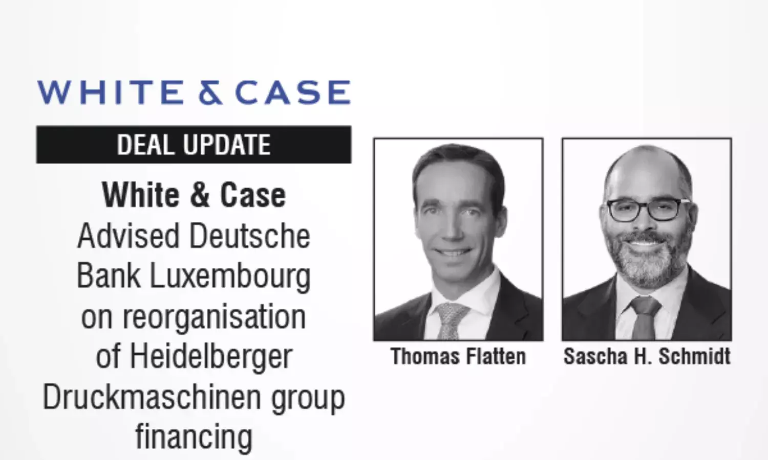Global law firm White & Case LLP has advised Deutsche Bank Luxembourg S.A. as facility agent on the reorganisation of the group financing of Heidelberger Druckmaschinen AG.