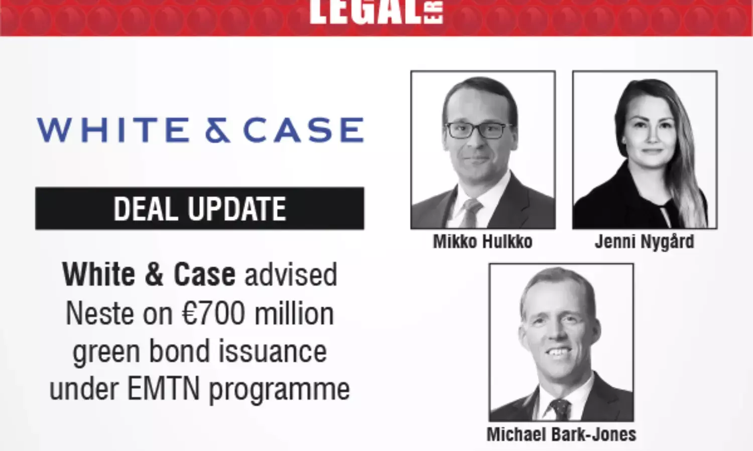 White & Case advised Neste on its €700 million green bond issuance under its €2.5 billion EMTN programme, supporting sustainable finance goals.