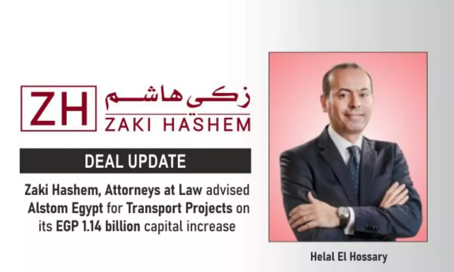 The prominent and historic Egyptian law firm, Zaki Hashem, Attorneys at Law advised Alstom Egypt for Transport Projects on the successful completion of a cash capital increase amounting to EGP 1,148,521,600, following receipt of all necessary approvals from the Financial Regulatory Authority (FRA) and the General Authority for Investment and Free Zones (GAFI).