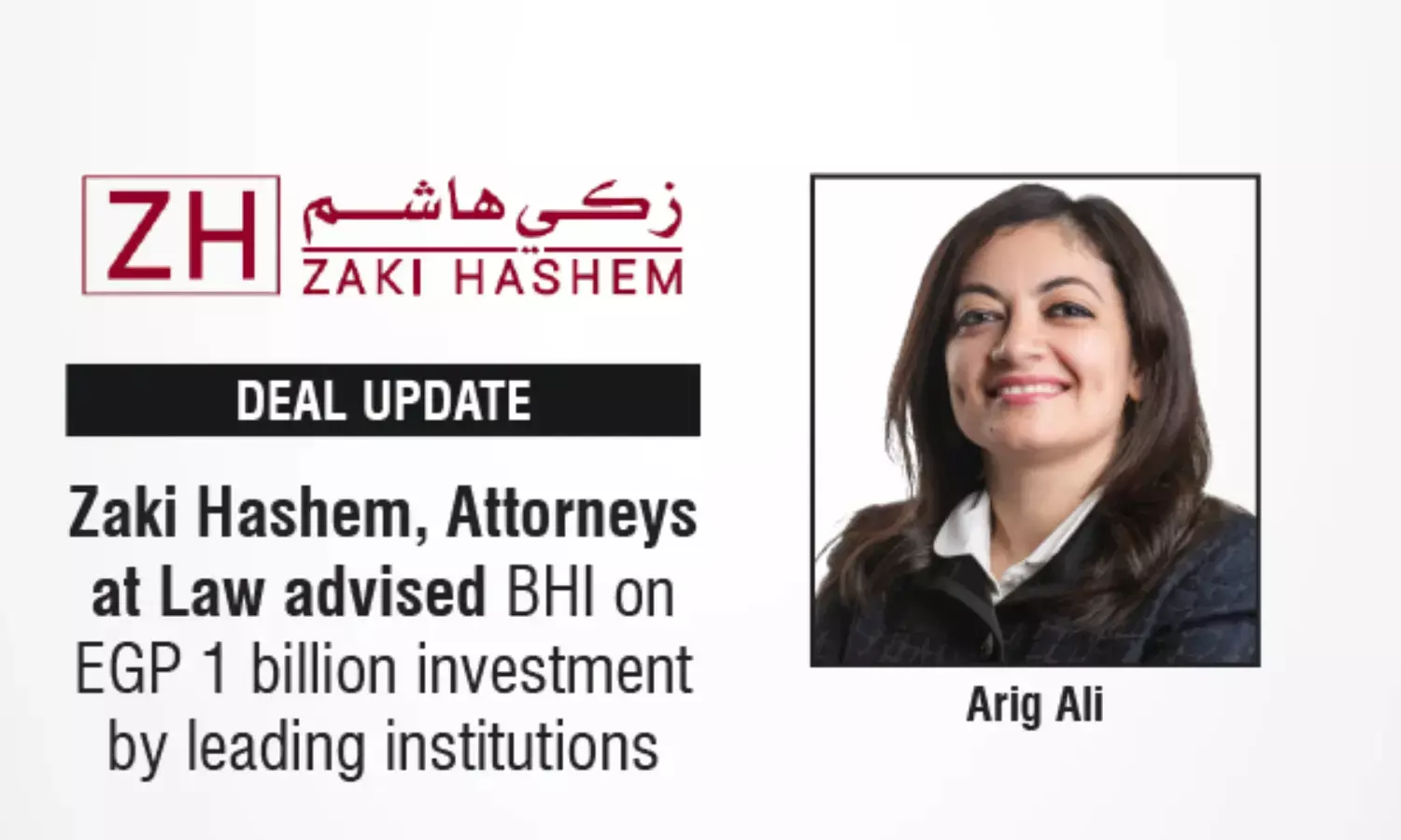 Zaki Hashem, Attorneys At Law Advised BHI On EGP 1 Billion Investment By Leading Institutions