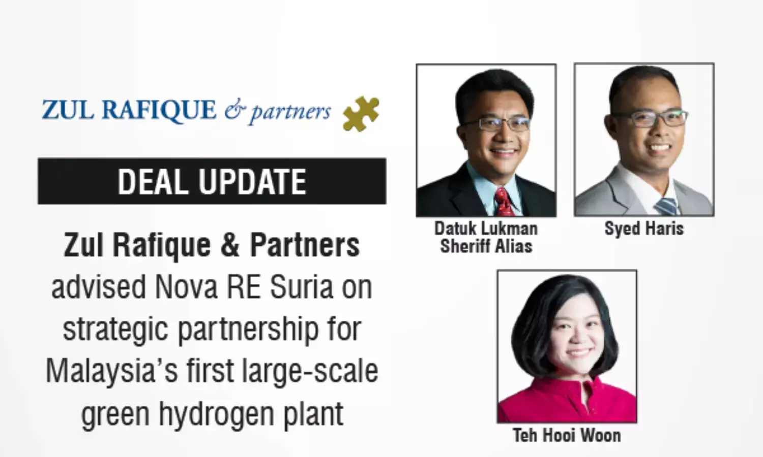 Zul Rafique & Partners advised Nova RE Suria on strategic partnership for Malaysia’s first large-scale green hydrogen plant