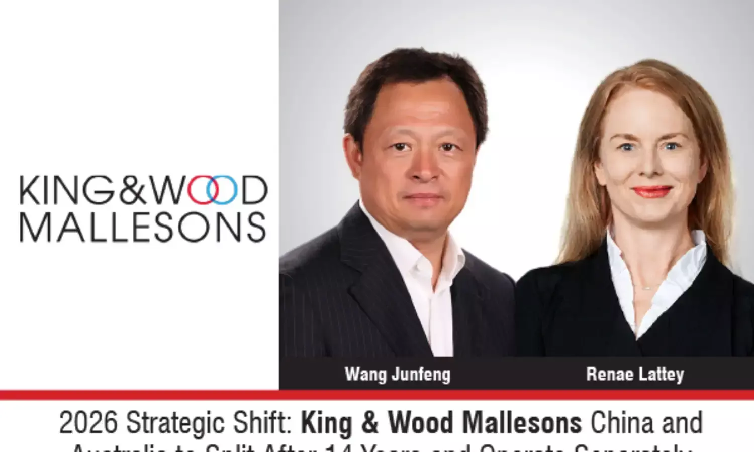 King & Wood Mallesons to separate China and Australia businesses in 2026, resuming independent operations under original brands.