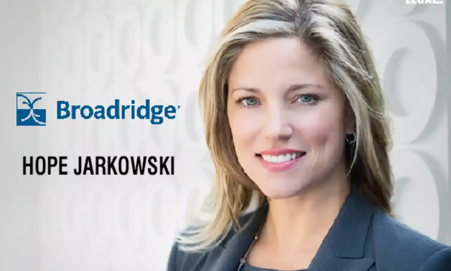 US-listed fintech company Broadridge Financial Solutions has added Hope Jarkowski as the Chief Legal Officer.