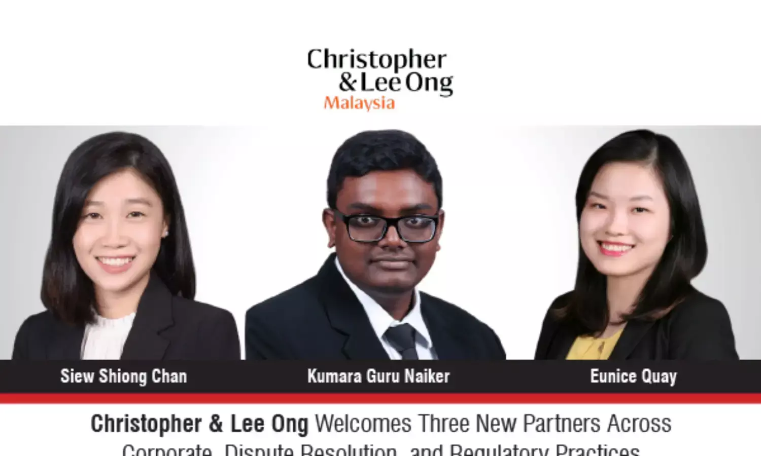 CLO promotes Siew Shiong Chan, Kumara Guru Naiker & Eunice Quay to partner, strengthening corporate, litigation & regulatory practices.