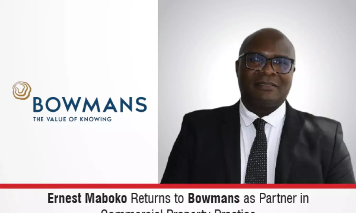 The leading African law firm with a presence in six countries, Bowmans, has welcomed back commercial property expert Ernest Maboko, appointing him as a Partner in its Johannesburg Commercial Property Practice. Maboko brings rare and highly sought-after expertise, having served as Senior Legal Counsel at a leading South African financial institution, with deep experience in commercial property finance and broader real estate matters.