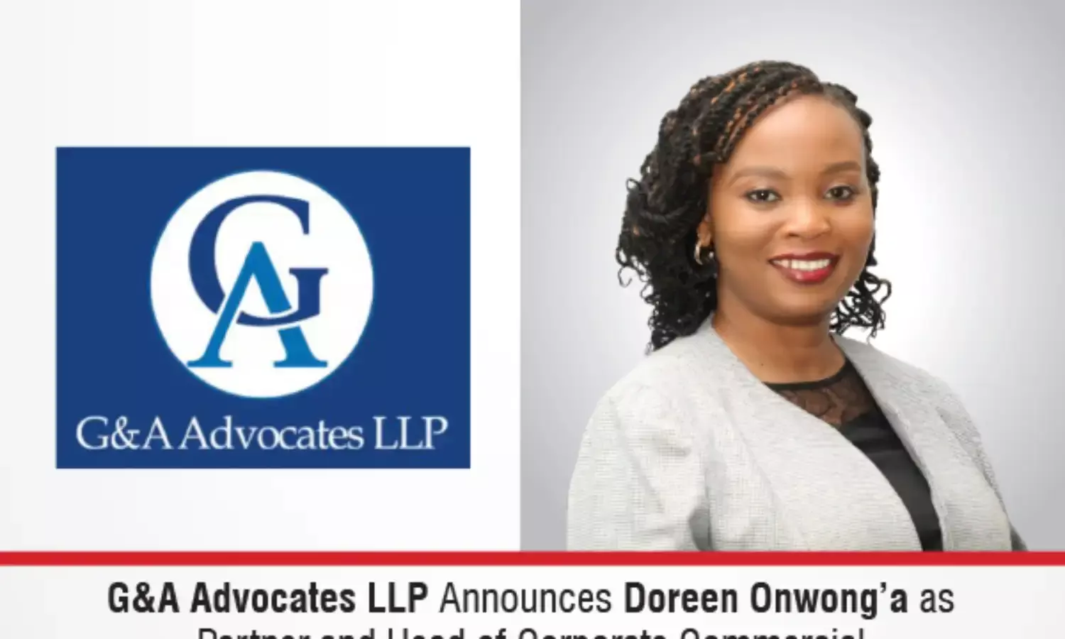 “We are delighted to welcome Doreen Onwong’a to G&A Advocates LLP as Partner and Head of Corporate Commercial. She brings exceptional expertise, sound judgment, and a strong reputation for excellence, all of which align perfectly with the values and ambitions of our firm. Her appointment marks an important milestone in our continued growth and commitment to delivering outstanding service to our clients.”