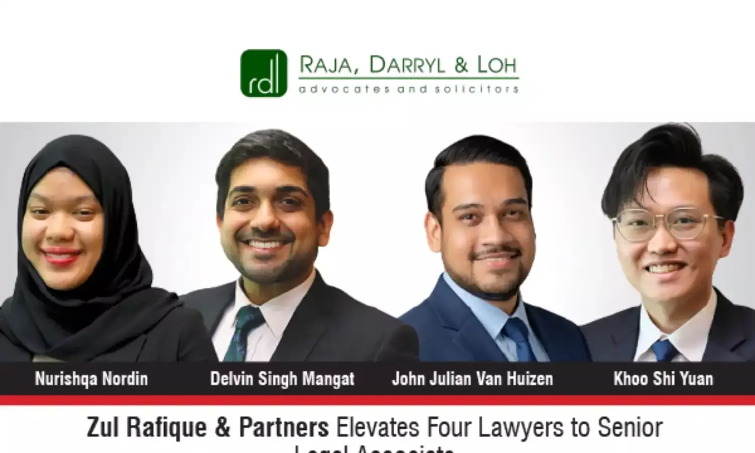 Zul Rafique & Partners elevates Nurishqa Nordin, Delvin Singh Mangat, John Julian Van Huizen, and Khoo Shi Yuan.