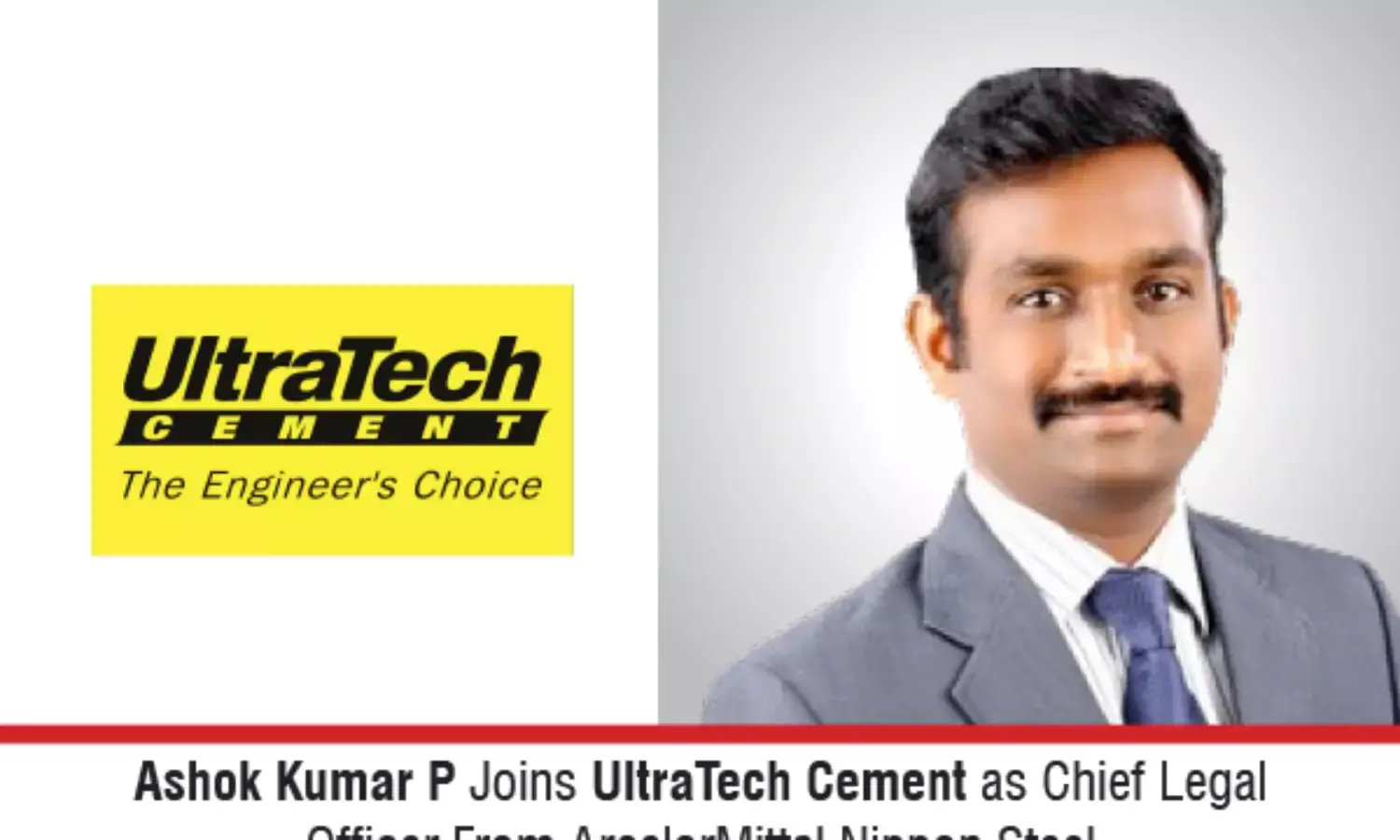 UltraTech Cement appoints Ashok Kumar P as Chief Legal Officer, joining from ArcelorMittal Nippon Steel.