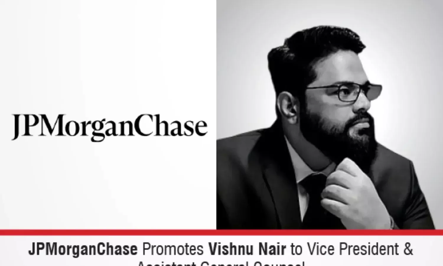 JPMorganChase & Co. has elevated Vishnu Nair to the position of Vice President and Assistant General Counsel, marking a significant milestone in his long-standing association with the global financial institution.