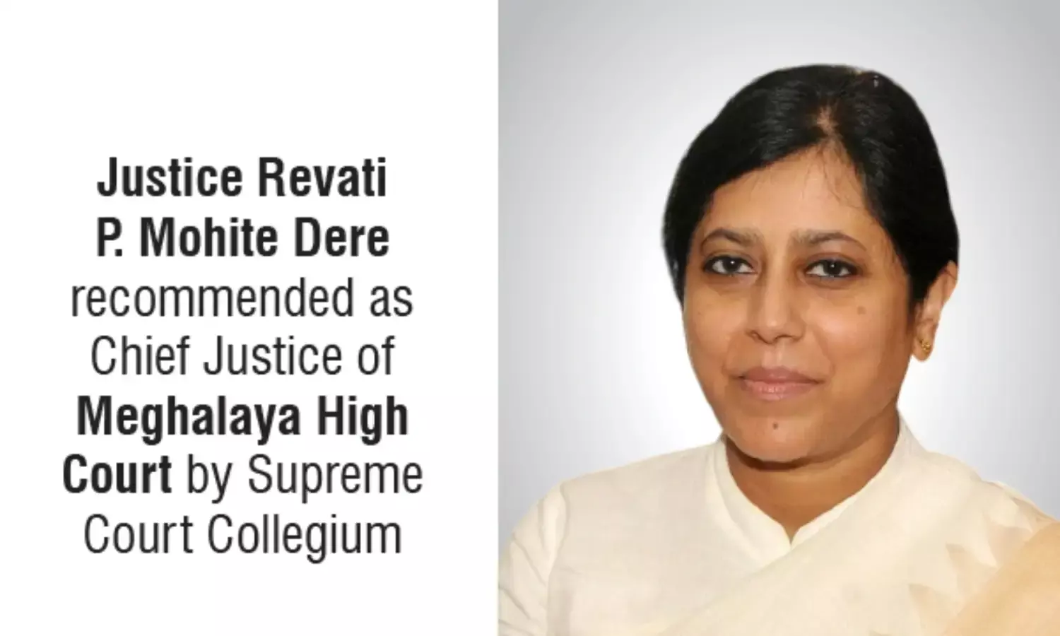 Justice Revati P. Mohite Dere recommended by Supreme Court Collegium as Chief Justice of Meghalaya High Court.