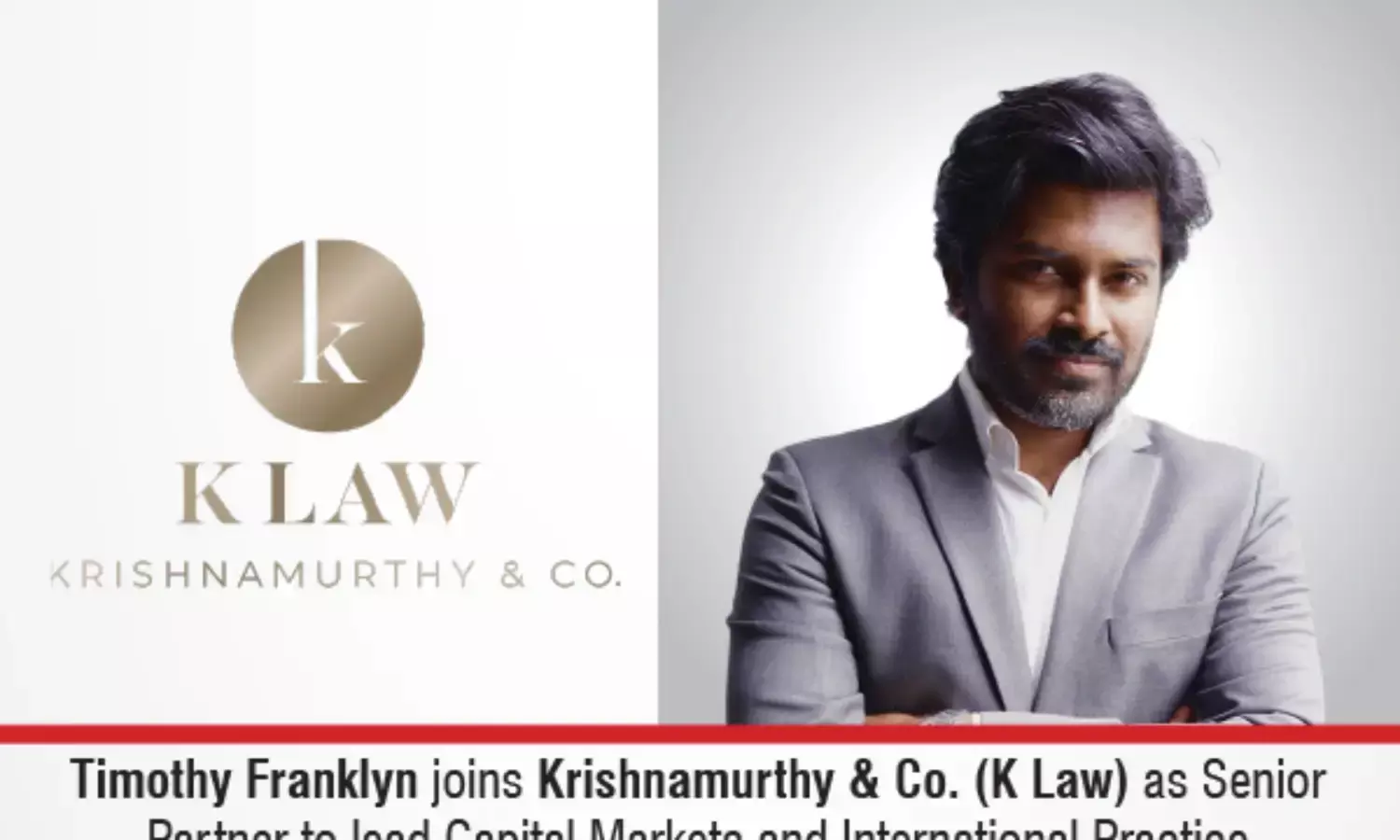 The premier full-service Indian law firm, Krishnamurthy & Co. (K Law) has announced the appointment of Timothy Franklyn as Senior Partner and Head of its Capital Markets and International Practice, effective February 2, 2026.