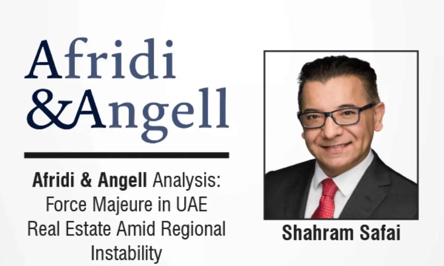 The Afridi & Angell team, led by Shahram Safai (Partner) and Doneen Ennis (Associate), examined the impact of ongoing geopolitical tensions across the Middle East on force majeure in the UAE real estate sector.