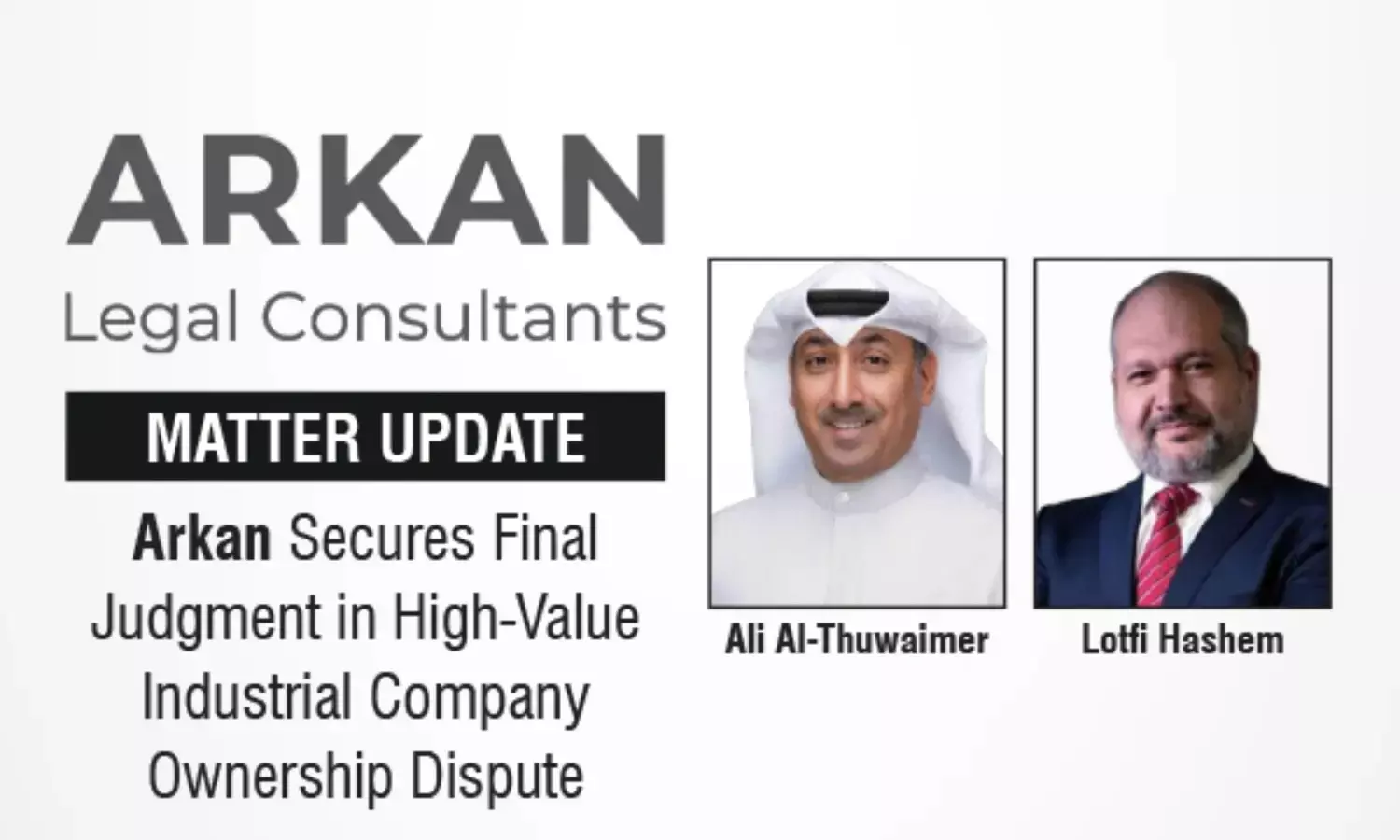 The Kuwait-based law firm offering legal services across the Middle East, with a strong focus on Kuwait and the wider Gulf Cooperation Council (GCC) region, Arkan Legal Consultants has secured a final court judgment in favour of its client, resulting in the dismissal of a claim seeking to establish the transfer of ownership and sale of shares in a major industrial company operating in Kuwait and across the GCC.