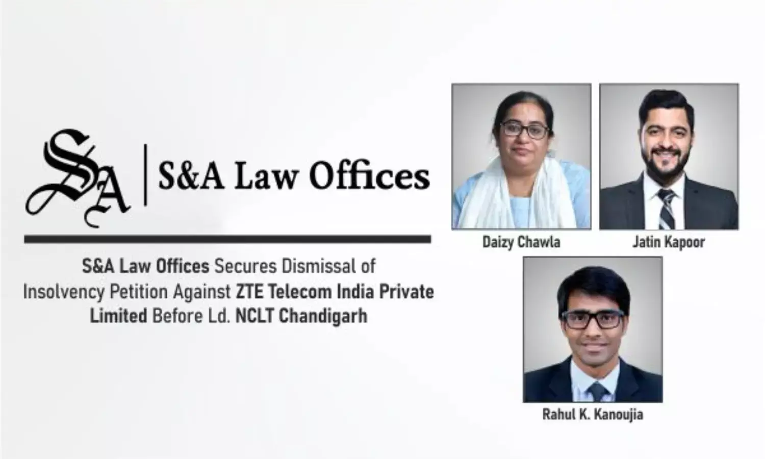 S&A Law Offices secured dismissal of insolvency petition against ZTE Telecom India before NCLT Chandigarh.