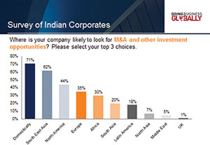 The US is the number one destination for Indian companies looking for M&A and other investment opportunities outside Asia (44% of Indian business leaders say that the US is a top destination), while continental Europe rounded out the Top Four.