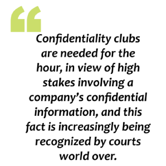 In fact, with global expansion of businesses, such practices have been adopted by courts world over as breach of confidentiality will have adverse implications for a party and its operations in various jurisdictions. As a result, confidentiality clubs have become the new norm in litigation/legal proceedings across the world, be it in the field of tech-licenses, trade secrets, data protection, arbitration involving business agreements, etc.